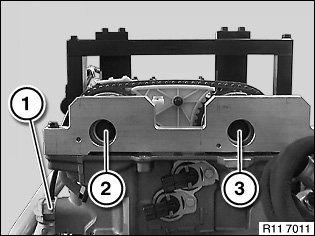 If special tool 11 4 281 cannot be installed, the camshaft must be rotated at the hexagon head at the rear.