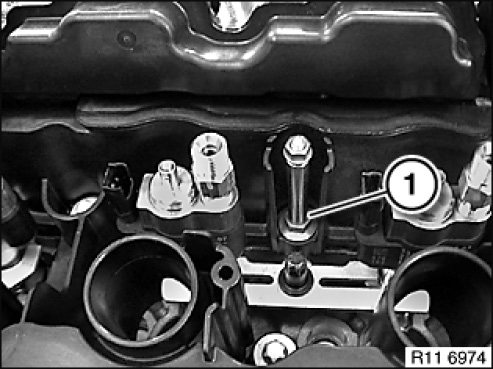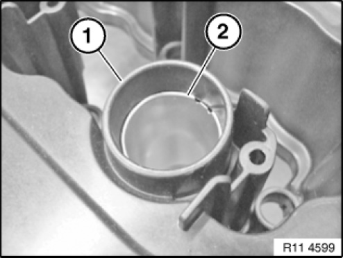 Slotted sleeves (2) for guiding ignition coils in cylinder head cover (1) must be replaced.