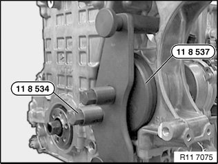 Secure special tool 11 8 535 with special tools 11 8 531 and 11 8 537.