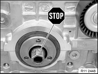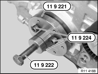 Screw special tool 11 9 232 with screws (special tool 11 9 234 ) to crankshaft hub.