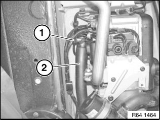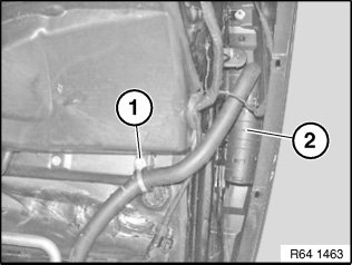 Release hose clamp (1), disconnect air intake hose (2) and feed out.