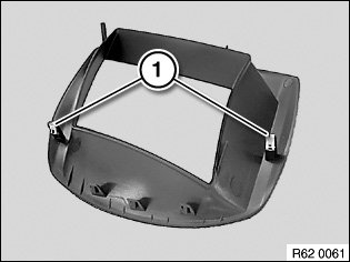 Make sure retaining clips (1) are correctly seated on trim for head up display.