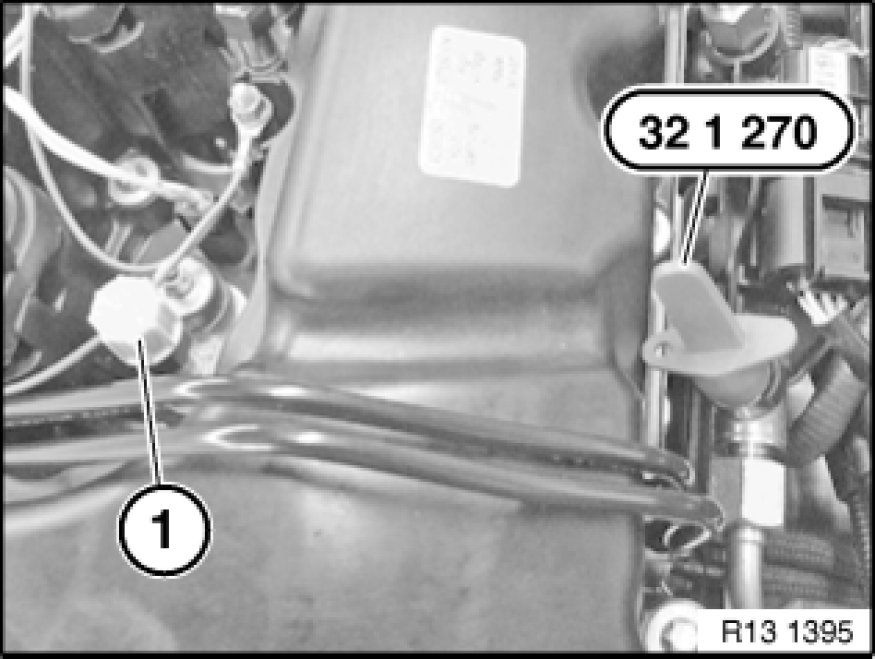 Seal pressure line (1) with a matching plug from special tool kit 32 1 270.