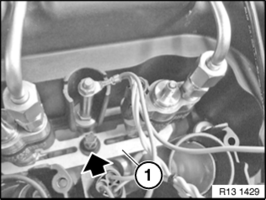 - Then tighten down nut (2) on high-pressure rail.