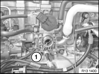 Lay exhaust gas recirculation (1) upwards to one side. Do not remove.