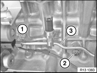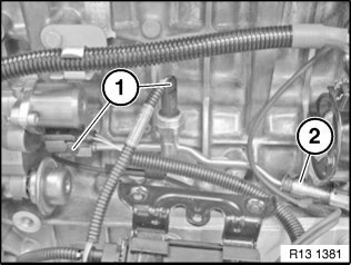 Feed lines with soldered holder must be replaced by new version with elastomer clamp holder. Observe installation position of fuel low-pressure sensor. Lines for solenoid switches are laid behind fuel line.