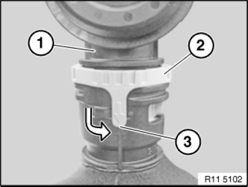 Turn the lock (2) in the direction of the arrow until the marks (3) align.