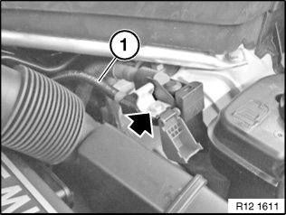 Release nut, remove positive battery cable (1) from positive battery connection point.