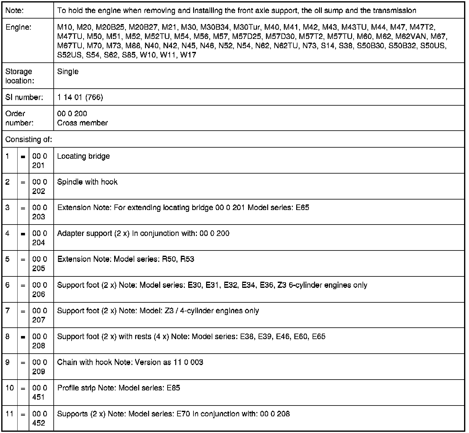 00 0 200 Cross member