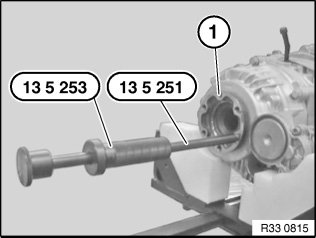 Drive out drive flange (1) with special tools 13 5 251 and 13 5 253.