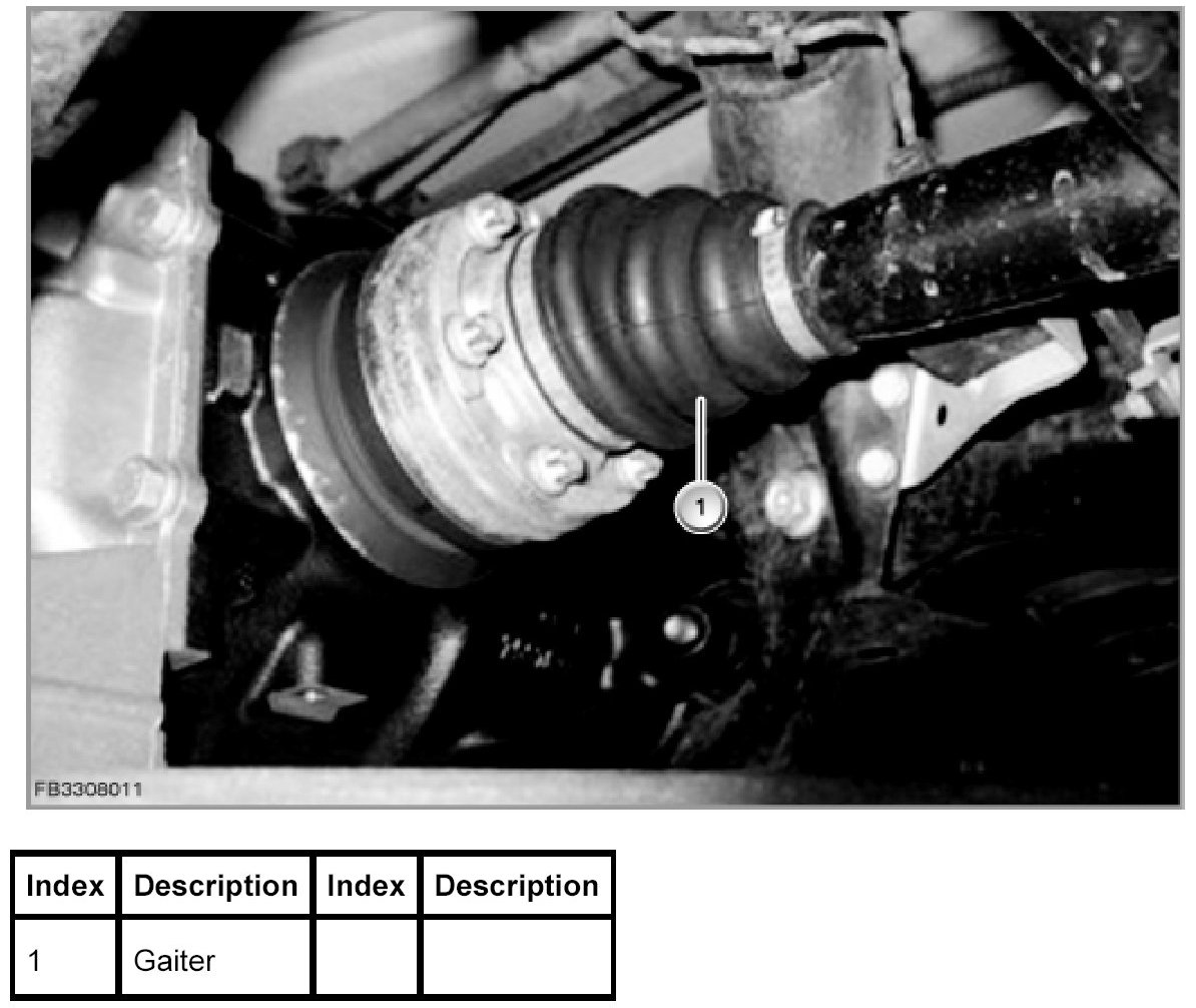 5 Gaiter on the driveshaft or output shaft loose or damaged
