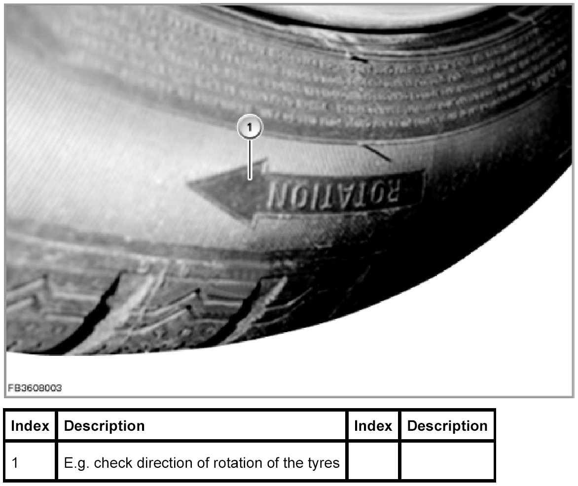 1 Direction of rotation of the tires incorrect. Profile and tire inflation pressure not OK or damage to tire