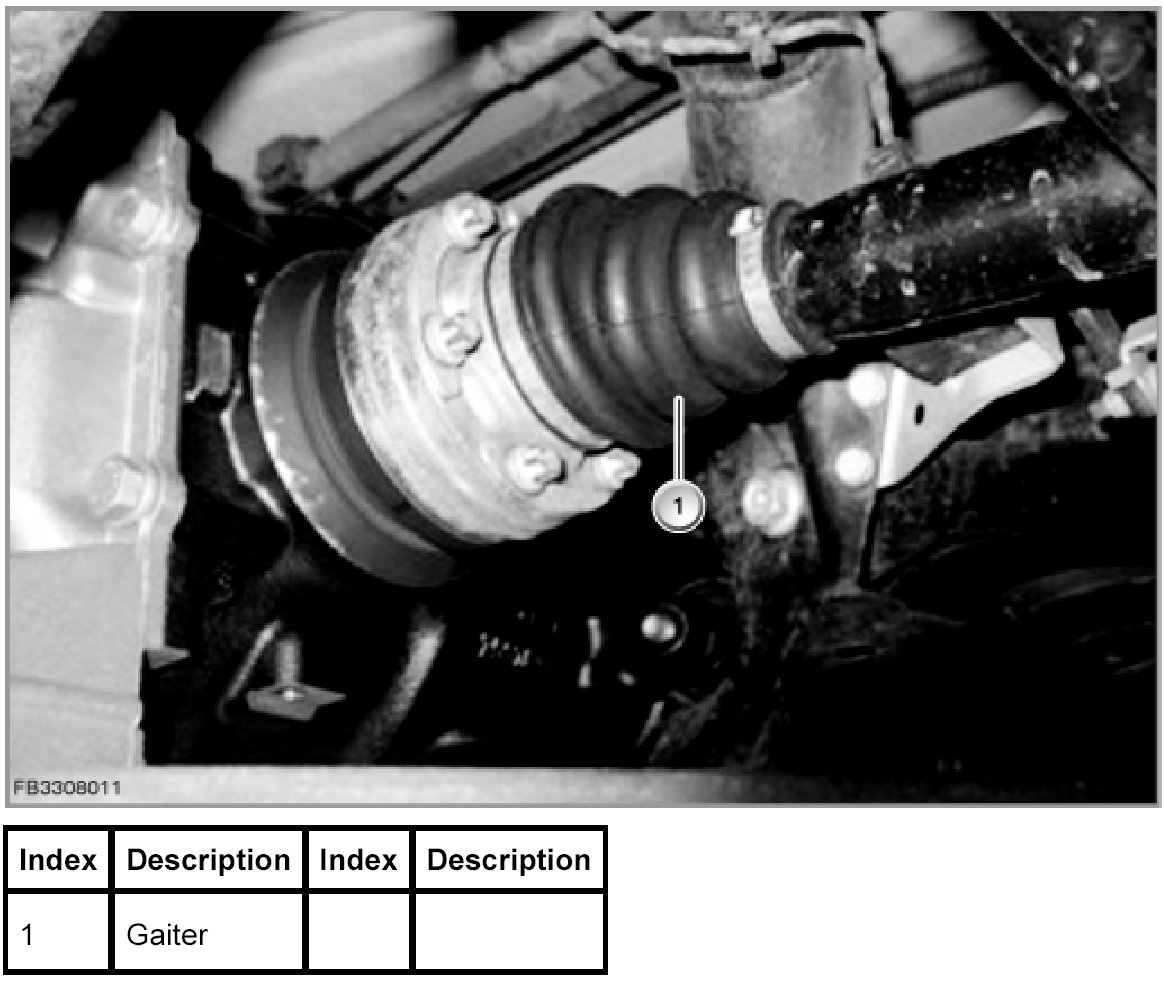 5 Gaiter on the driveshaft or output shaft loose or damaged
