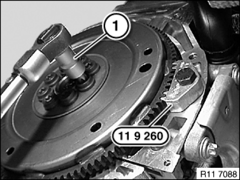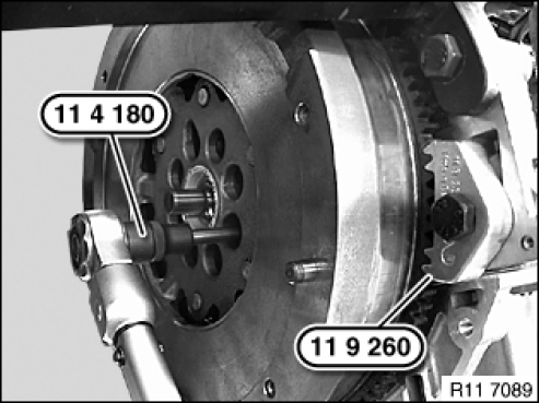Secure flywheel with special tool 11 9 260 .