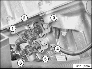 Disconnect plug connection (1) on inlet solenoid valve (2).