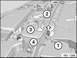 Make sure bonnet/hood contact switch (3) is correctly seated in holder (4).
