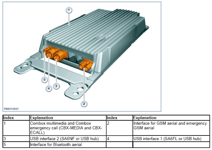 Starting in 03/2010, the interface box, the interface box High and the Telematic Control Unit will gradually be replaced by the Combox. The Combox will be introduced later for all series.