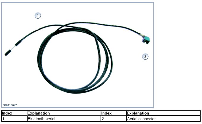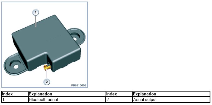 The Bluetooth aerial is the transceiver aerial for the Combox. Among other things, there is a Bluetooth module installed in the Combox. The Bluetooth module is the interface between the Combox and the mobile phone and the Bluetooth handset. The Bluetooth module is connected to the Bluetooth aerial via an aerial line.