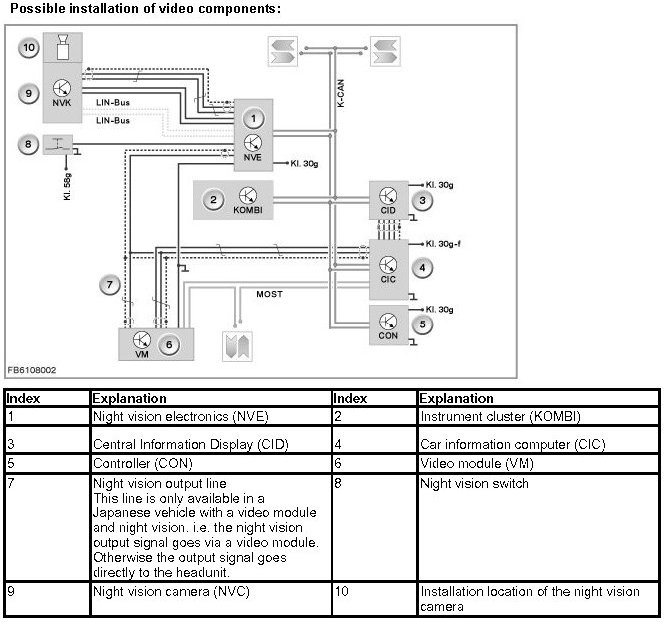 Possible installation of video components: