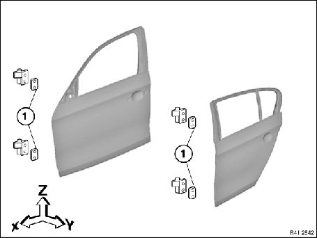 Adjust rear door in transition to front door (Y) by fitting shims.