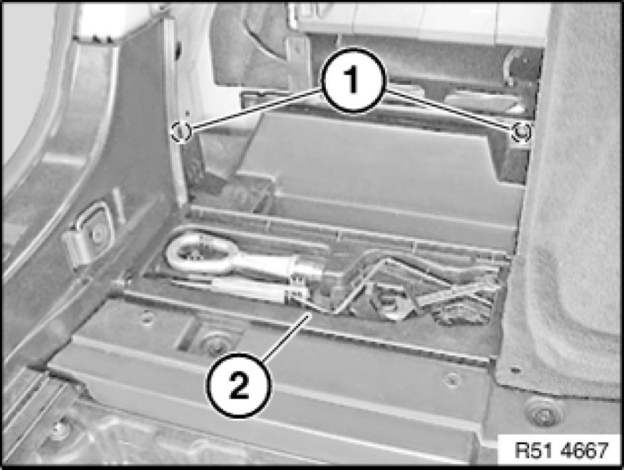 - Remove luggage compartment floor trim panel 51 47 101 Removing and Installing/Replacing Luggage Compartment Floor Trim Panel