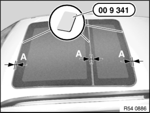 Check that distance between glass slide/tilt sunroof covers and body is the same with special tool 00 9 340.