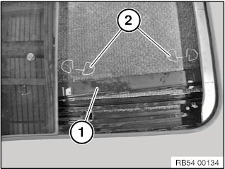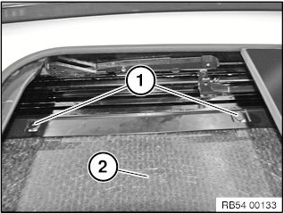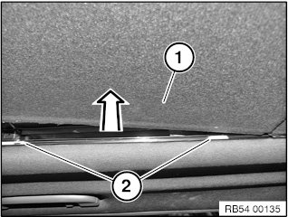 Open floating headlining (2) to the point where the screws (1) are accessible.