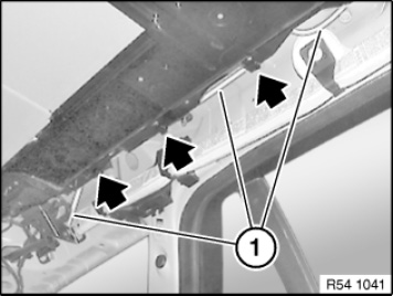 Detach metal tab clips with airbag lead (1) from glass slide/tilt sunroof frame.