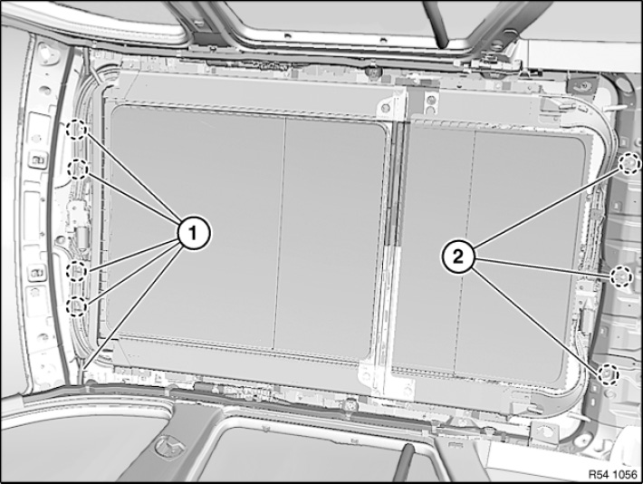 - Release screws (2) on and carefully lower slide/tilt sunroof.