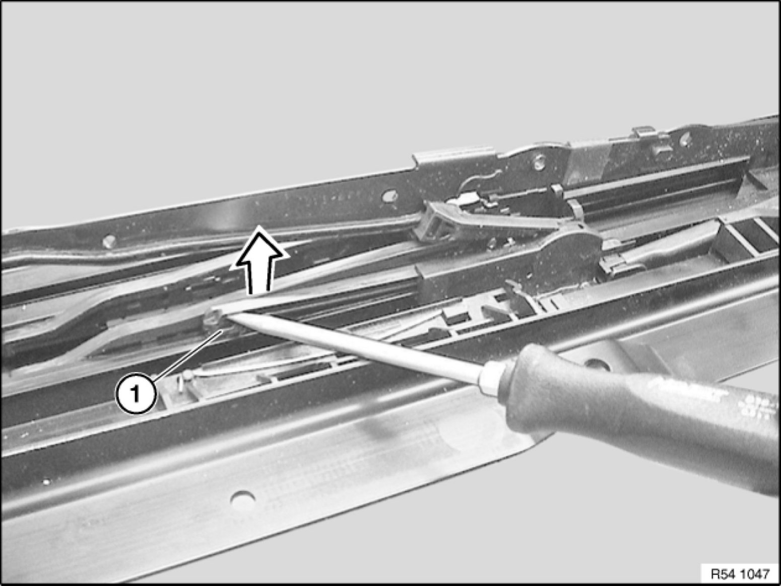 Pry out locking lever (1) of detent element at front from guide rail (unlock).