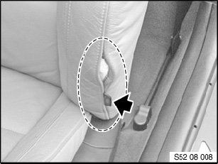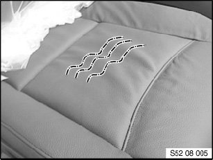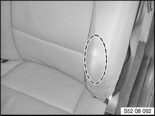- For damaged airbag seams (sewed in) on the cover of the seat backrest or the door trim panel, the affected component must be replaced.