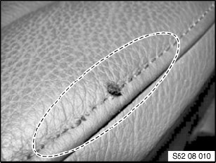 The fault pattern presents no product defect. The effected location can be repaired with the aid of the BMW leather repair kit.