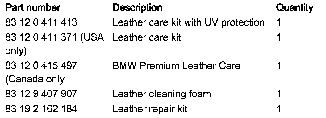 - Work using BMW leather care kit is not reimbursed by the warranty as this is a cleaning and care operation.