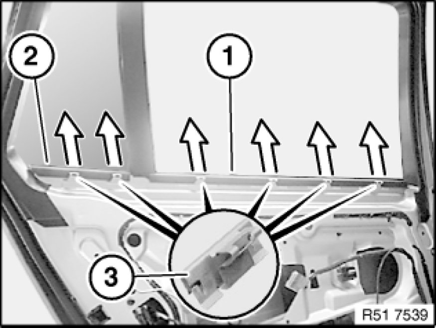 51 22 330 - Removing and installing/replacing window cavity cover strip on inside rear door