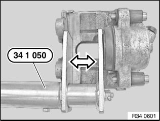 34 11 000 Removing and installing or replacing brake pads on both front disc brakes (Teves floating caliper)Special tools required: