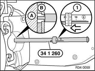 Insert special tool 34 1 260 rim into opening for brake pad wear indicator.