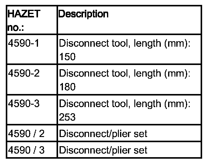 To disconnect coolant hoses, use commercially available disconnect tools such as HAZET brand tools (see table).