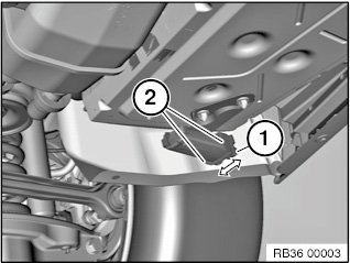 Press retaining tabs (2) apart as indicated by arrow.