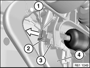 Pull brake light switch (2) in direction of arrow out of brake light switch holder (3).
