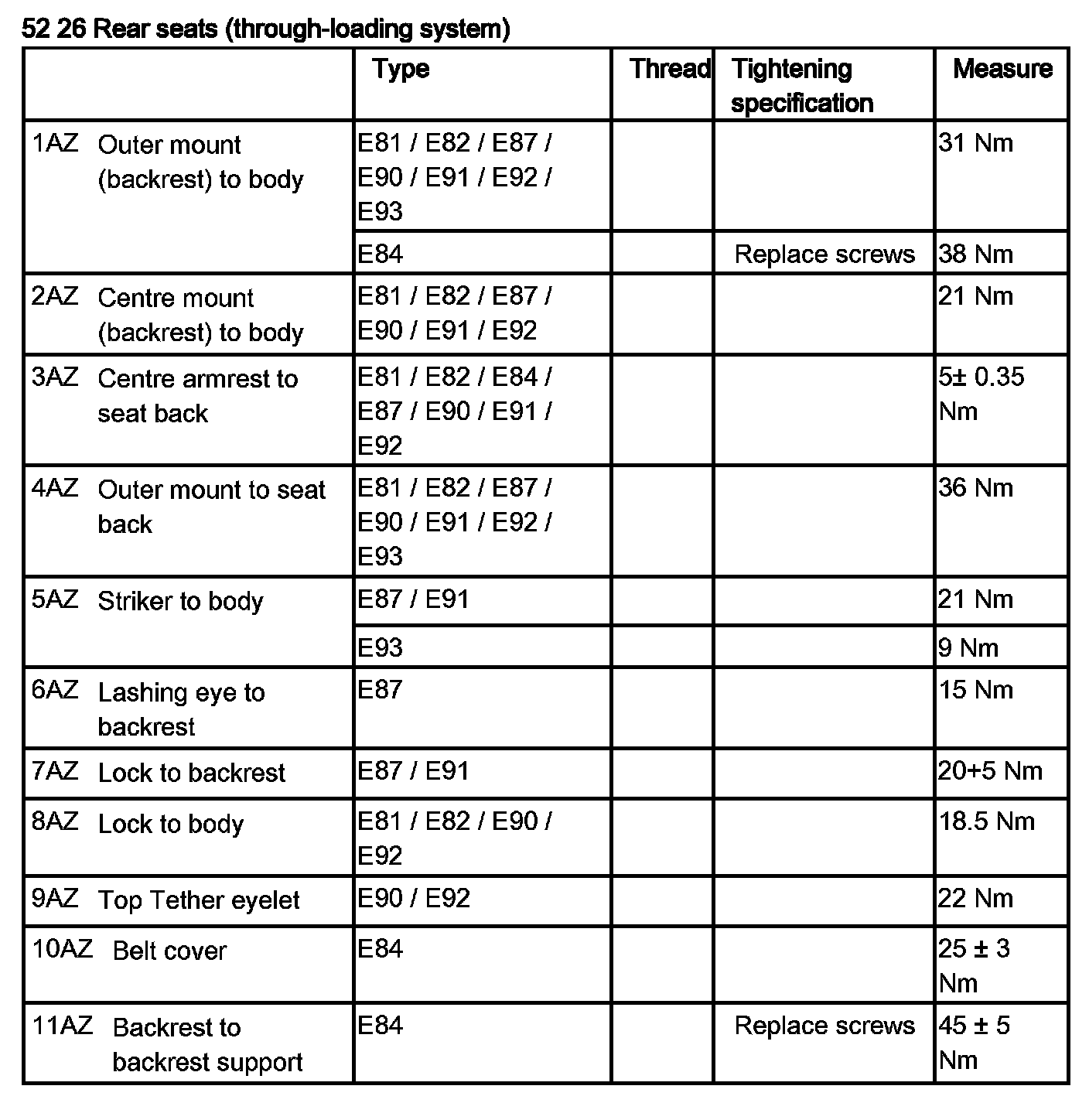 52 26 Rear Seats (Through-Loading System)