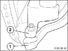 - Tie rod joint: There must be no play between the track-rod arm (2) and track rod joint (1)