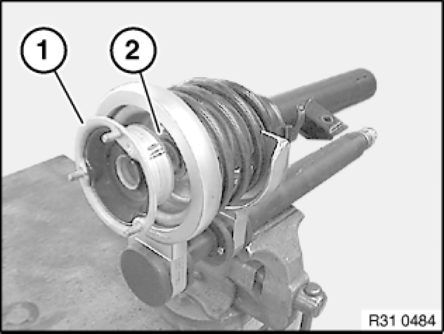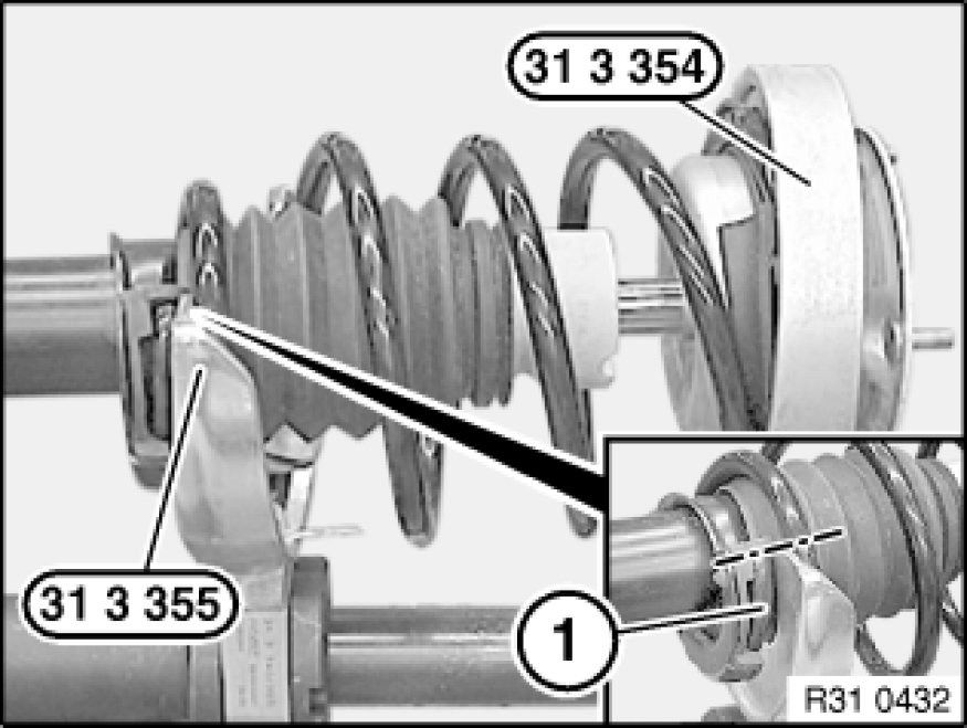Lower coil of coil spring must rest completely in recess of special tool 31 3 355 31 3 350 Spring Holder!