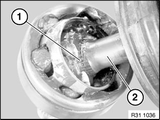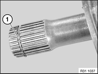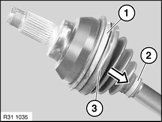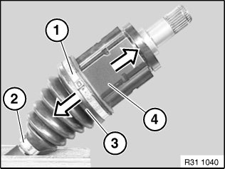 31 60 535 Replacing two gaiters on output shaft(s) (output shaft(s) removed)Grip output shaft (1) in vice with aluminium clamping jaws.
