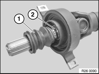 Release gaiter (1) with screwdriver from groove (2) and pull off over longitudinal splines.