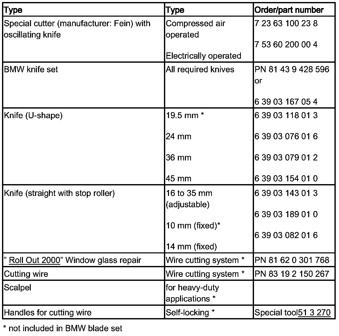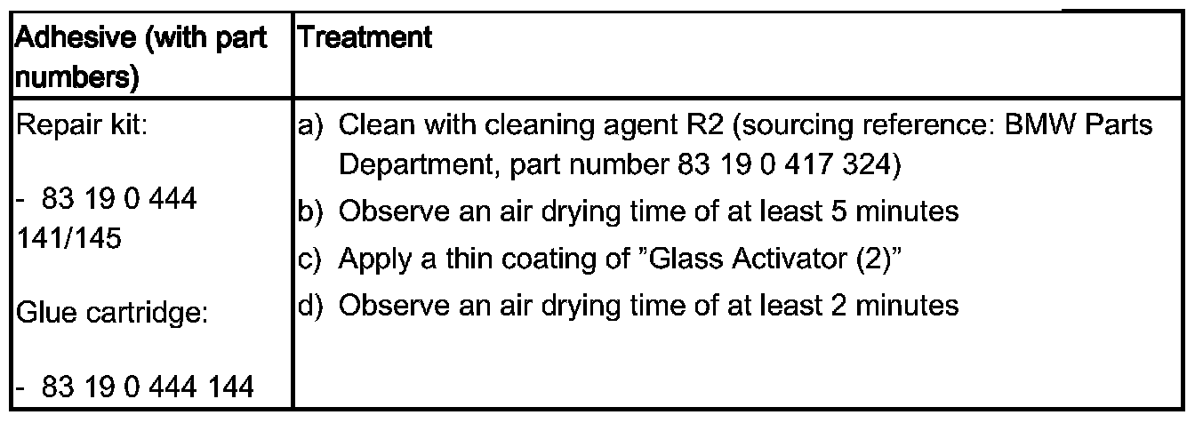 - 1-day system: Window glass adhesive (Part number 83 19 0 444 144*)