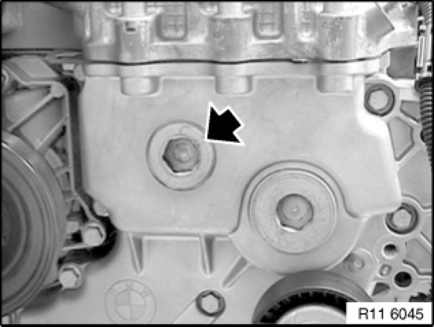 Bolt (1) must be removed beforehand as it is no longer accessible in TDC position.