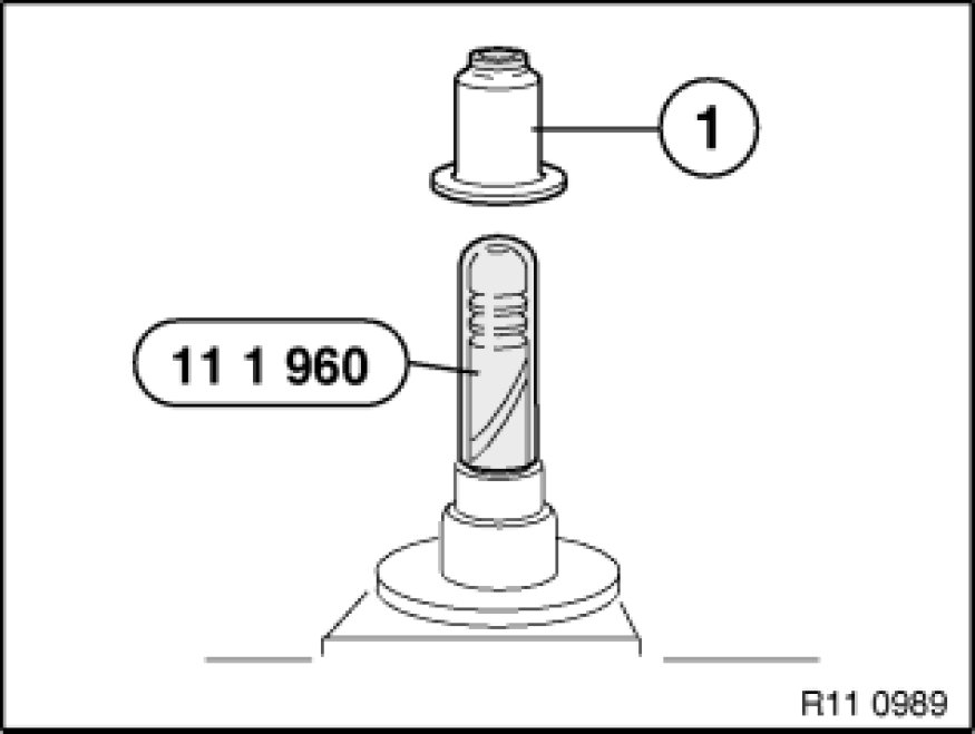 Lubricate valve stem and fit special tool 11 1 960.