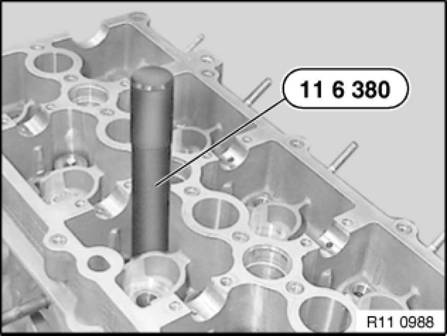 Remove special tool 11 6 370 together with valve stem seal.
