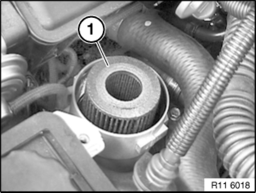 Pull oil filter element (1) out of oil filter housing.