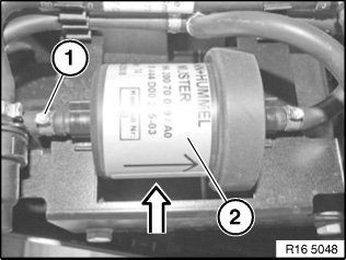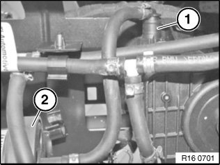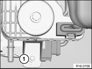 Connect urea/water mixture suction unit (refer to BMW Service Workshop Equipment) to connection (1).